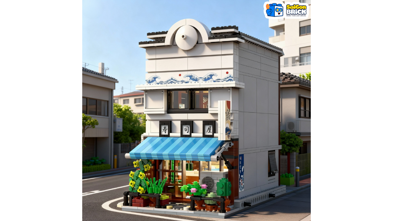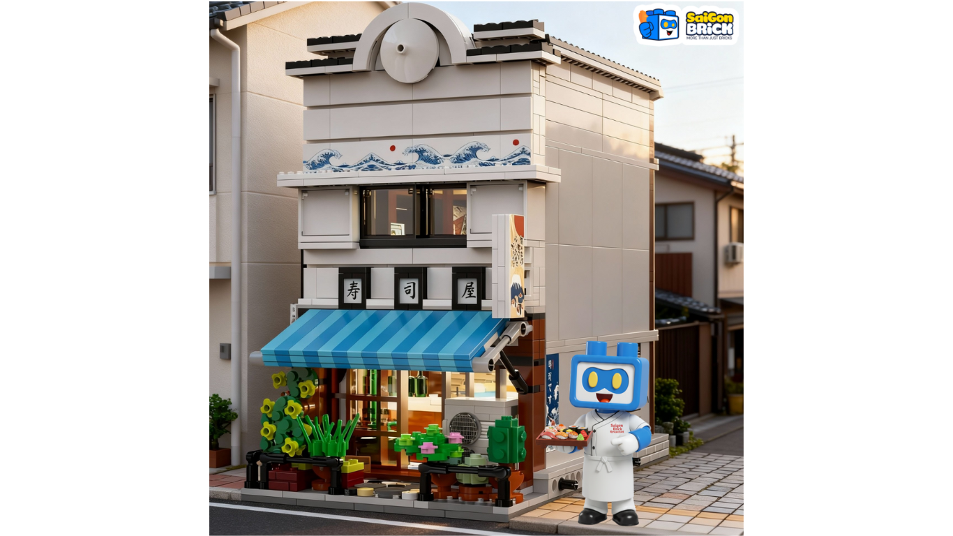 Trong dòng mô hình kiến trúc phố thị (Street View), những thiết kế mang âm hưởng văn hóa Á Đông luôn có một sức hút rất riêng. CaDA C66018 - Sushi Restaurant chính là một ví dụ điển hình cho sự tỉ mỉ, nơi mỗi mảnh ghép đều góp phần tái hiện một không gian ẩm thực Nhật Bản đầy tính nghệ thuật. Tại Saigon Brick, đây là một trong những bộ mô hình được đánh giá cao nhất về khả năng tối ưu không gian và chi tiết nội thất.