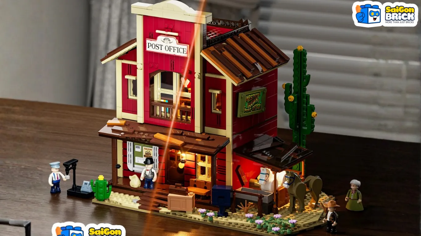Nếu bạn đang tìm kiếm một bộ mô hình kiến trúc mang đậm hơi thở lịch sử với độ chi tiết kinh ngạc, Funwhole F9044 - Old West Post Office chính là một "kiệt tác" thu nhỏ. Tại Saigon Brick, đây không chỉ là một bộ lắp ráp, mà là một hành trình tái hiện lại kỷ nguyên vàng của miền Viễn Tây hoang dã qua 1,692 mảnh ghép.