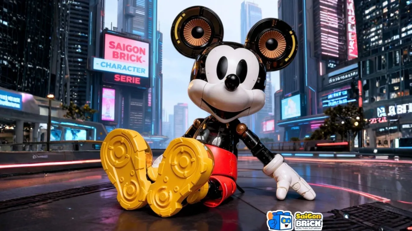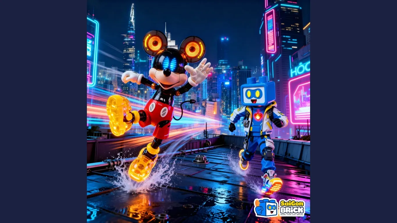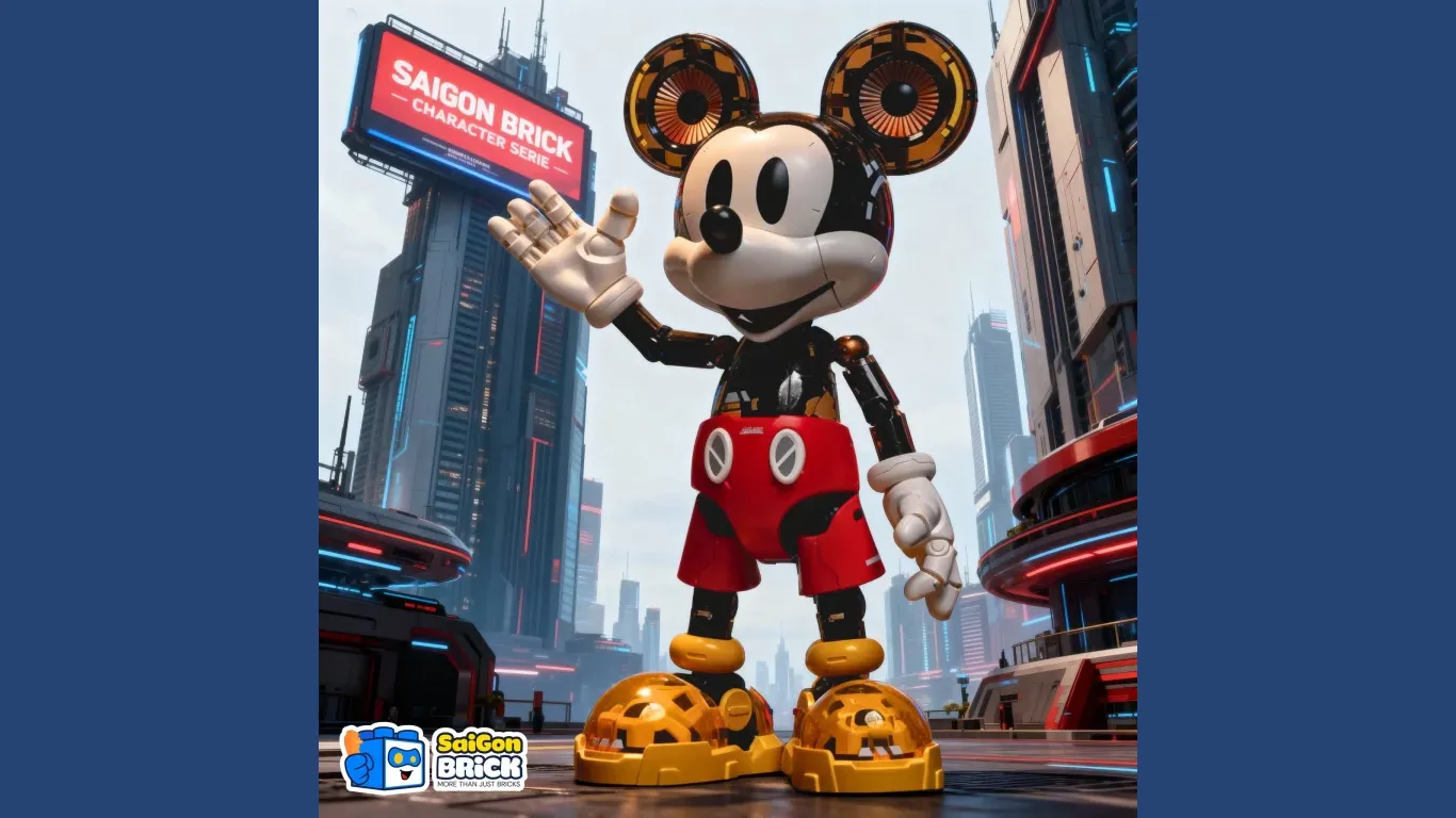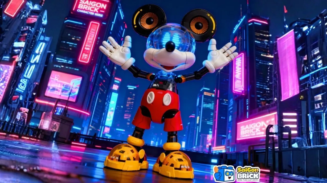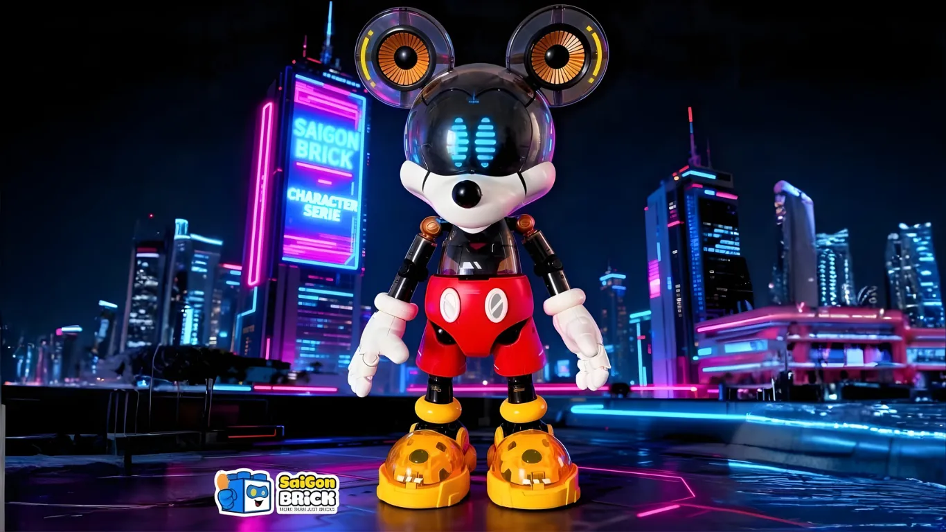 Các chi tiết cơ khí, khớp nối rõ ràng cùng bảng màu ánh sáng neon khiến Mickey trở nên mới mẻ, phù hợp với những không gian dành cho người lớn trẻ tuổi, sinh viên, dân sáng tạo hoặc người sưu tầm mô hình.