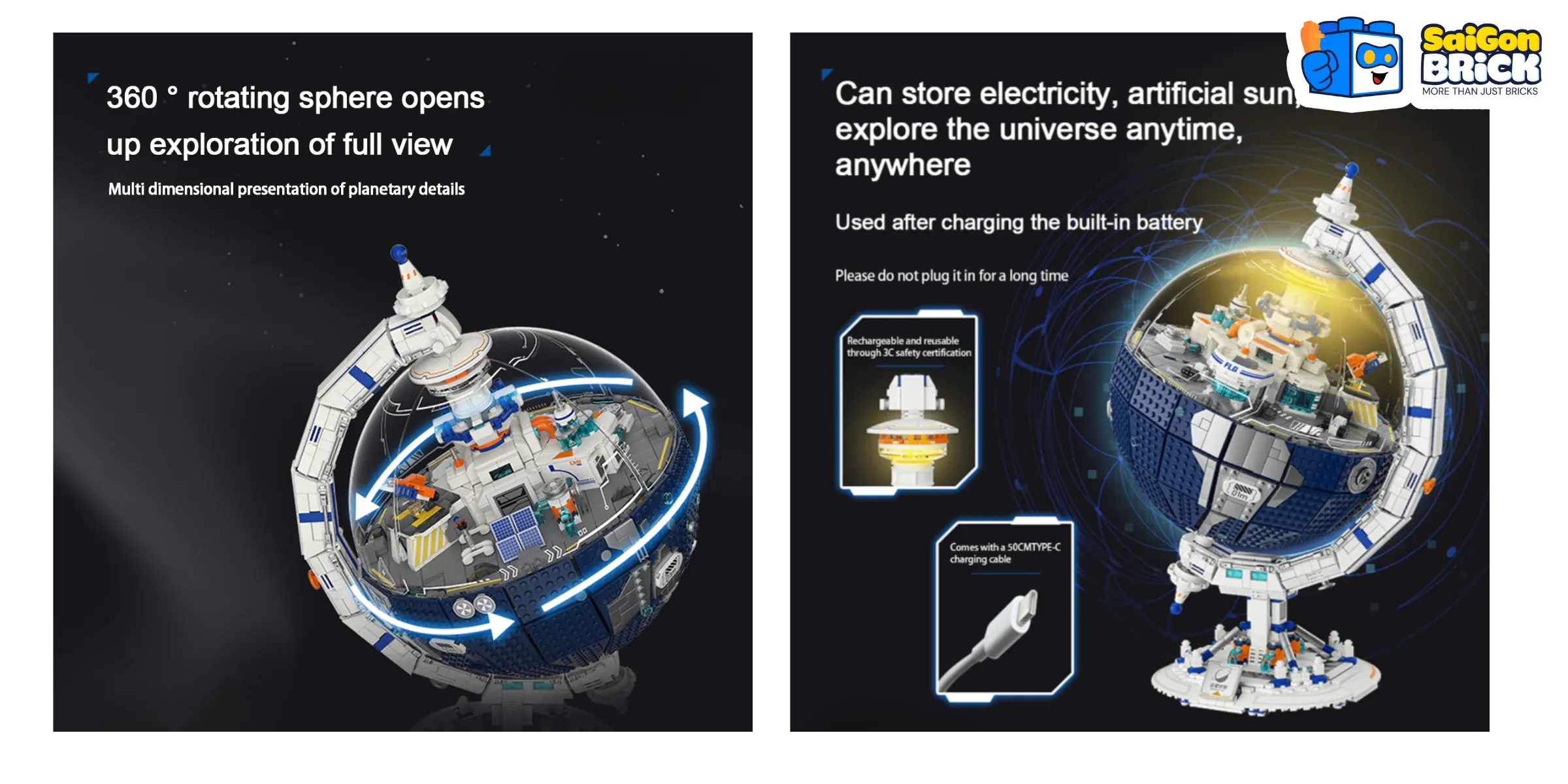 Mô hình địa cầu – trạm không gian có đèn với số lượng mảnh lớn, chi tiết dày và cực kỳ bắt mắt khi lên đèn.