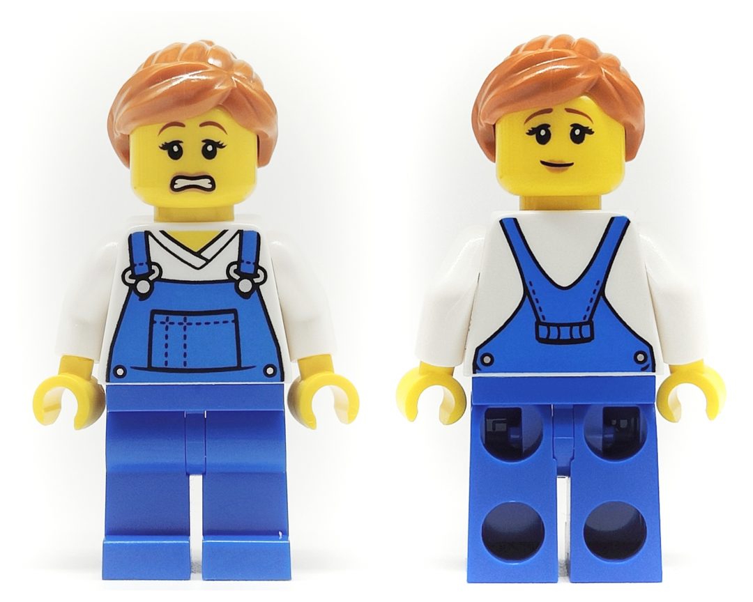 Nhân vật Nữ lái Xe tải có một phong cách thời trang với bộ quần yếm và áo liền quần màu xanh lam, kèm theo áo lót màu trắng. Mái tóc màu vàng dâu và hai biểu cảm khác nhau, một vẻ lo lắng và một vẻ rụt rè, tạo nên sự đa dạng trong cách thể hiện tình cảm và tính cách của nhân vật này. Điều này làm cho cô trở nên sống động và thú vị, và chắc chắn sẽ là một phần quan trọng trong trải nghiệm chơi của người chơi LEGO.