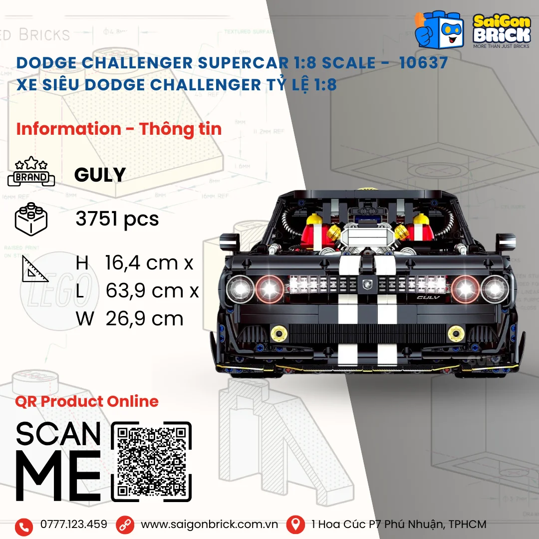 Hãy là người đầu tiên đánh giá NON LEGO GULY 10637 – Dodge Challenger Supercar 1:8 Scale (3751pcs) – Xe Siêu Dodge Challenger Tỷ Lệ 1:8 – Chính hãng giá tốt TPHCM