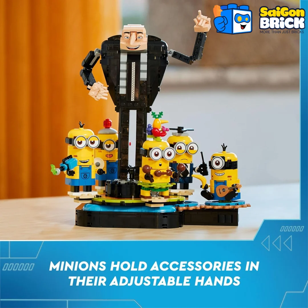 Authentic accessoriesEach Minion can move their hands and hold accessories. |