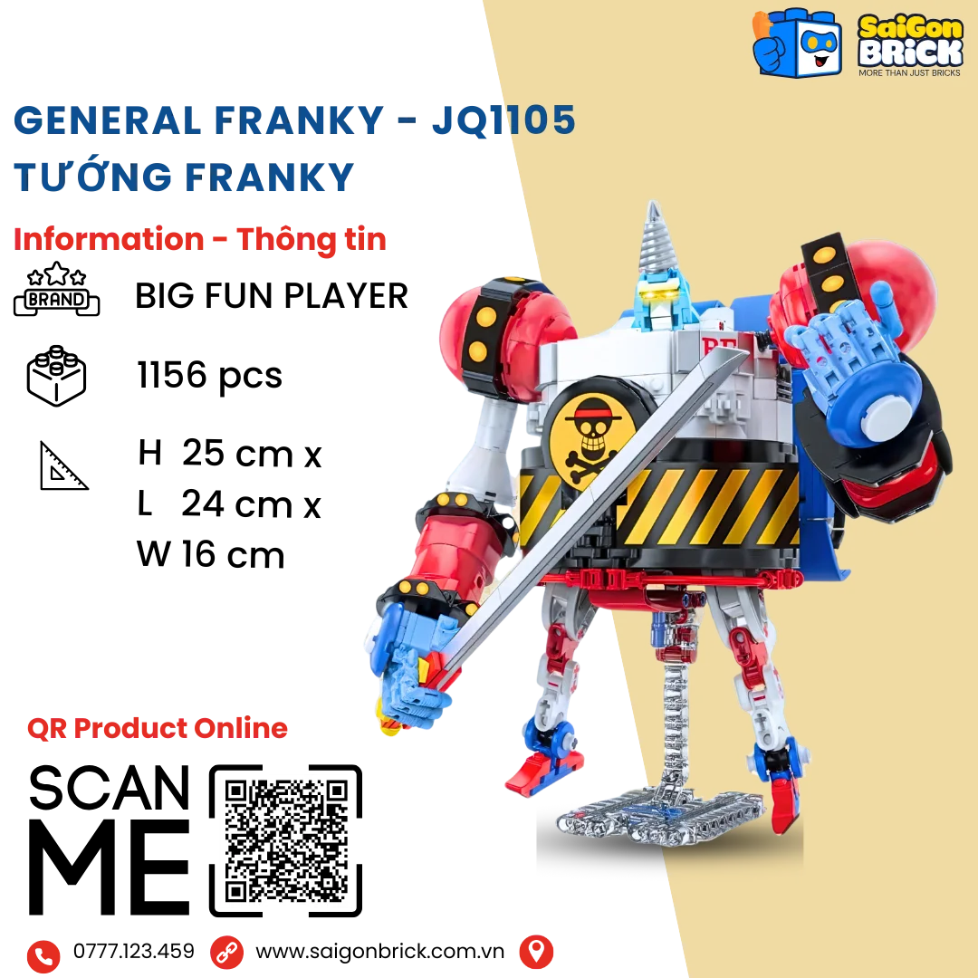 Hãy là người đầu tiên đánh giá NON LEGO BIG FUN PLAYER JQ1105 – General Franky (1156pcs) – Tướng Franky – Chính hãng giá tốt TPHCM