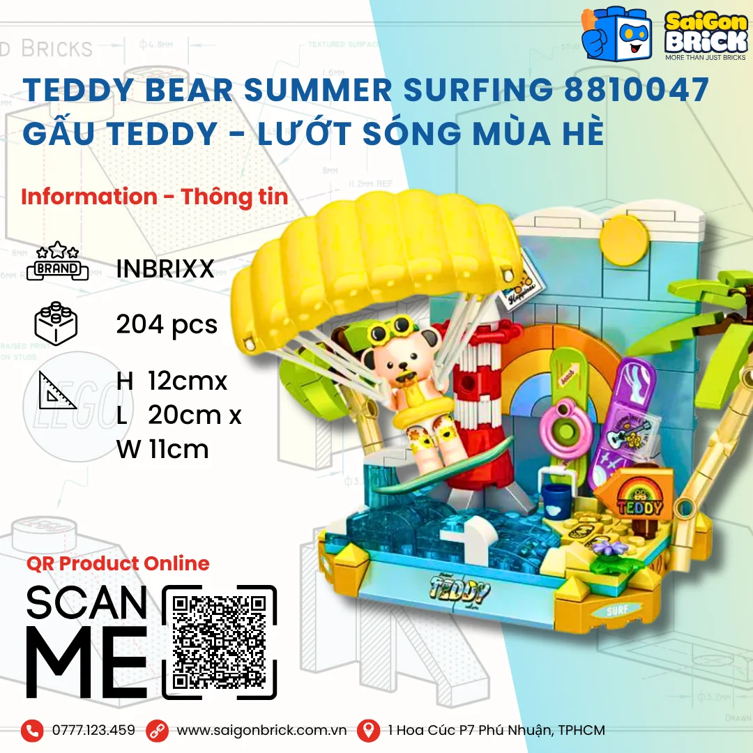 Hãy là người đầu tiên đánh giá NON LEGO INBRIXX 881007 – Teddy Bear Summer Surfing (204pcs) – Gấu Teddy Lướt Sóng Mùa Hè – chính hãng giá tốt TPHCM