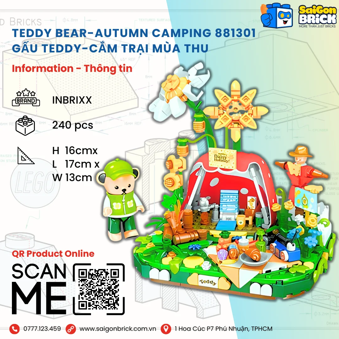 Hãy là người đầu tiên đánh giá NON LEGO – INBRIXX 881301 – TEDDY BEAR-AUTUMN CAMPING (240pcs) – GẤU TEDDY-CẮM TRẠI MÙA THU – chính hãng giá tốt TPHCM
