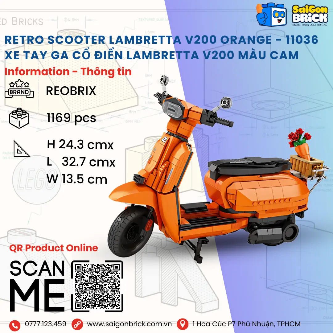 Hãy là người đầu tiên đánh giá NON LEGO REOBRIX 11036 – Retro Scooter Lambretta V200 Orange (1169pcs) – Xe Tay Ga Cổ Điển Lambretta V200 Màu Cam – Chính hãng giá tốt TPHCM