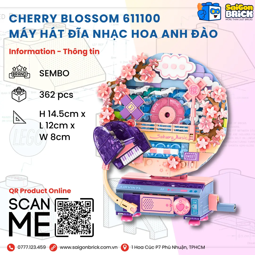 Hãy là người đầu tiên đánh giá NON LEGO Sembo 611100 – Cherry Blossom (362pcs) – Máy Hát Đĩa Nhạc Hoa Anh Đào – chính hãng giá tốt TPHCM