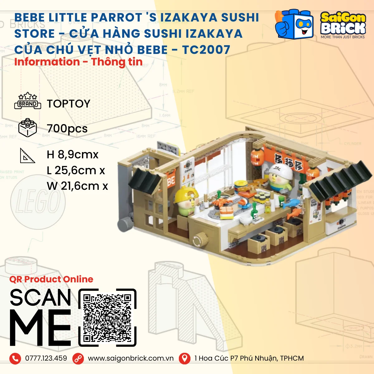 Hãy là người đầu tiên đánh giá NON LEGO TOPTOY TC2007 – BeBe Little Parrot ‘s Izakaya Sushi Store (700pcs) – Cửa Hàng Sushi Izakaya Của Chú Vẹt Nhỏ BeBe – Chính hãng giá tốt TPHCM